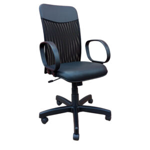 Encosto estruturado em quadro injetado em resina termoplástica de alto desempenho, polipropileno com adição de fibra de vidro, material de excelente tenacidade e ótima resistência mecânica, 100% reciclável, estofado com tela flexível a base de poliéster. Assento estruturado em compensado multi laminado e estofado em espuma flexível injetada de poliuretano, revestimento em tecido tipo crepe ou sintético. Braços reguláveis em altura através de botão lateral em formato de T contendo apoia braço em Polipropileno. Mecanismo do tipo contato permanente que possibilita ajuste de altura do assento, ajuste de altura do encosto e ajuste de inclinação do encosto, de maneira independente entre si. Pistão a gás e base de ferro com capa em polipropileno. Rodízios de nylon com pistas em nylon ou Poliuretano.